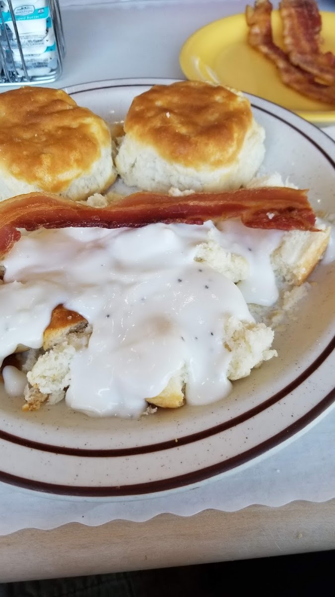 Our tour group of 45 wanted to eat at an authentic Route 66 diner and Kix On 66 did not disappoint!! My husband and I sat at the counter and observed how efficient the kitchen staff was in cooking all of our meals! The waitresses were HOPPING and did an awesome job of taking orders and serving the right ones to each customer. Our pancake platter, with two eggs to order and two strips of bacon, were delicious and more than ample. We loved the genuine atmosphere and roadside sign, as well as the mural painted on the outside wall. I DEFINITELY RECOMMEND!!